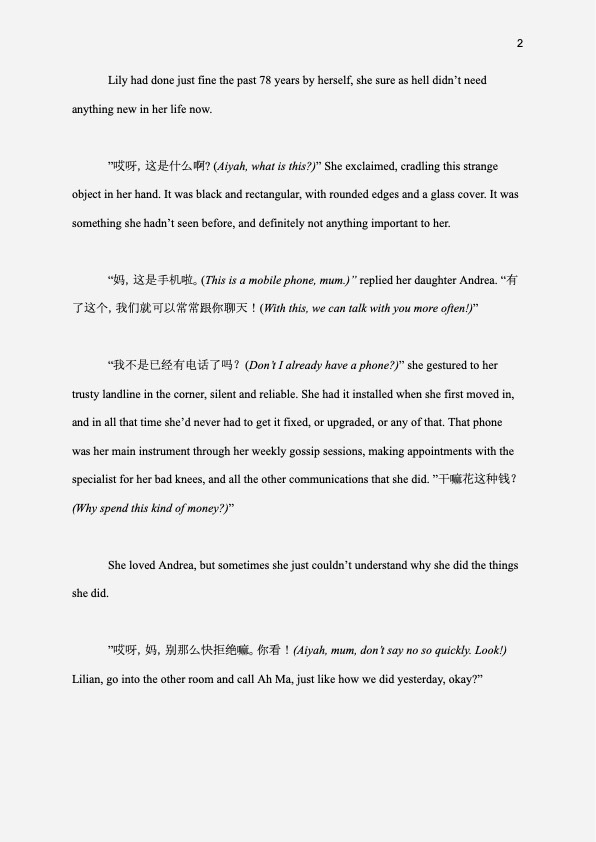An elderly woman receives a smartphone as a gift from her daughter. That gift starts a series of events that culminate in a life-changing event.